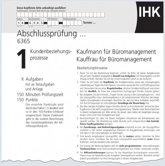 Kaufmann/Kauffrau für Büromanagement – Teil 2 der gestreckten Abschlussprüfung